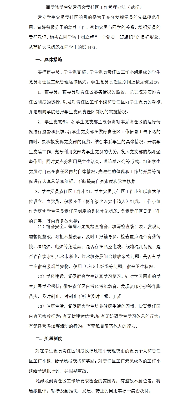 商公司员工党建宿舍责任区工作管理办法(试行)