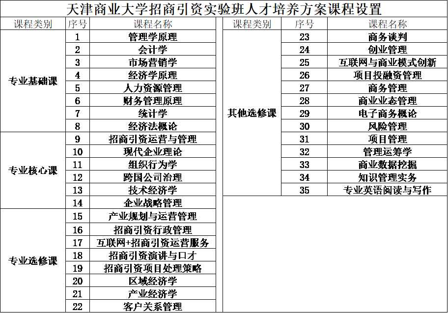 英国365集团工商管理专业招商引资实验班的整体教学计划遵循英国365集团本科教学计划设计的基本要求,对工商管理专业必修的各类课程不作改动,同时开设招商引资实务方向课程,并将专业综合(毕业)实习环节安排为在谷川联行有限公司进行的综合实训。