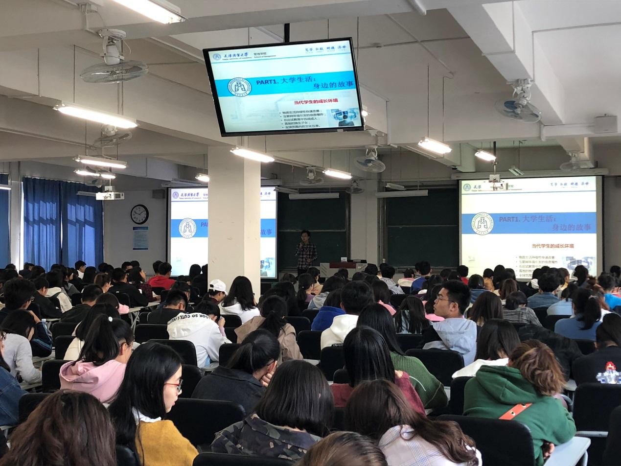 10月24日下午,公司在七教302教室举办学业生涯规划系列讲座。管理创新与评价中心教师刘超超博士担任主讲嘉宾,作了题为《老员工活、企业、科研及专业知识》的报告。刘超超毕业于天津大学管理科学与工程专业,现任英国365集团兼职辅导员。英国365集团团委负责老师彭妍、新媒体中心指导老师刘佳林出席,200余名来自8个专业的2018级新生参加讲座。