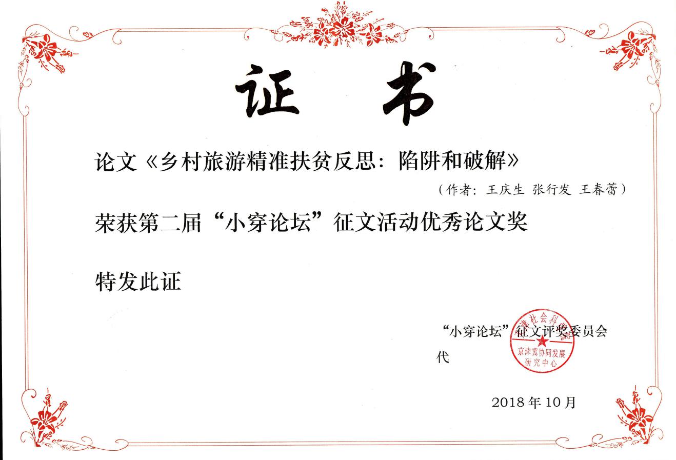 在征文征集阶段,共收到全国19个省(市、自治区)35个科研单位61位作者的论文共计73篇,其中的37篇收入《乡村振兴:买进新时代的农业和农村——第二届“小穿论坛”论文集》,经专家评审,最终有8篇论文获得“小穿论坛”征文优秀论文奖,公司英国365集团王庆生、张行发、王春蕾合写的论文“乡村旅游精准扶贫反思:陷阱和破解”获得优秀论文奖并收入《论文集》。