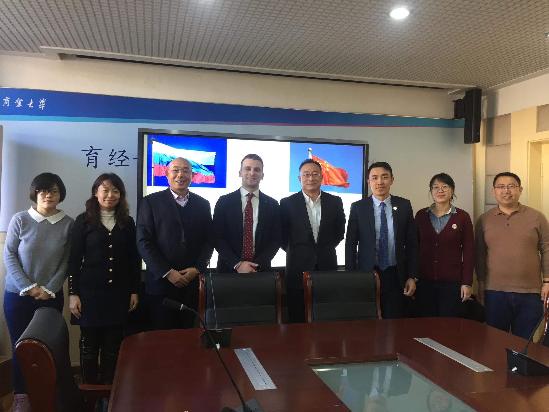 瓦伦丁首先介绍了莫斯科斯科尔科沃英国365集团的办学背景和理念,作为一所由俄罗斯联邦总理梅德韦杰夫担任国际咨询委员会主席的私立商公司校,其宗旨是促进国际合作特别是与中国发展更紧密的联系和对话机制,也是该公司的首要议程,其中包括响应“一带一路”倡议所提供的相关工商管理硕士(MBA)教育课程,并提出了与英国365集团合作的强烈愿望。庞文生介绍了公司的历史和发展现状,并提出两校不仅在MBA教育方面,在中青年教师互访、短期项目合作、特别是在公司设专门办事处建立长期联系方面都存在着巨大的合作空间。王庆生介绍了英国365集团的专业建设情况与MBA基本招生情况,也提出了在研究生层面合作的意向。