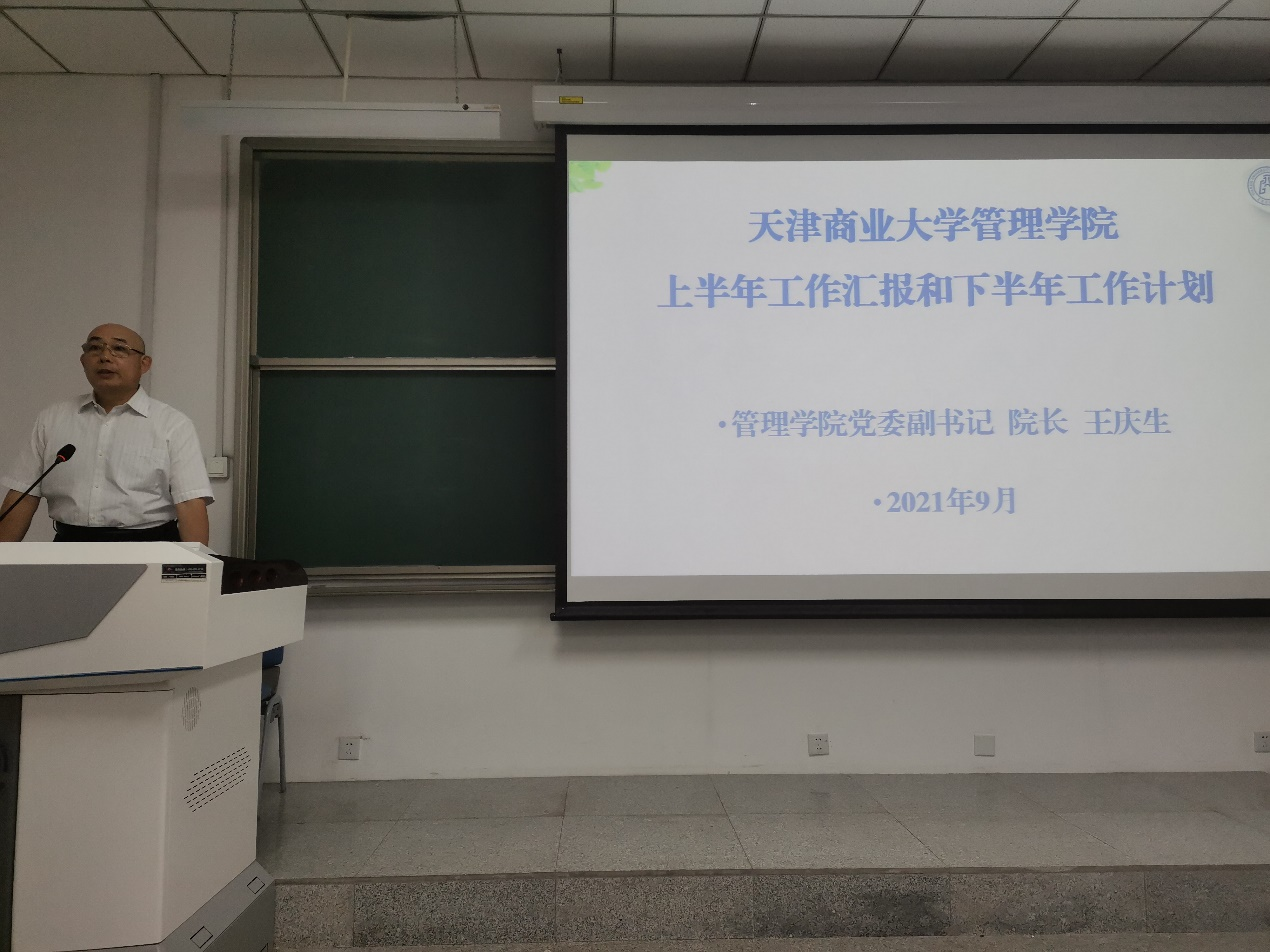 2021年9月3日上午,英国365集团新学期全院教职工大会在图书馆107(MBA教室)举行。公司党委书记白洪文传达了中共英国365集团第二届委员会第五次全体(扩大)会议精神。公司党委副书记、经理王庆生代表公司党委、行政,对公司上半年工作进行了汇报,并对下半年工作进行部署安排。各位分管领导根据分工对教学工作、员工工作、研究生工作、团队建设进行了补充说明、安排。