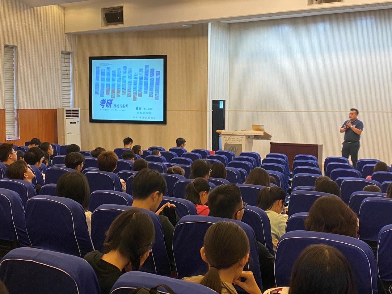 9月18日下午,公司在7号教学楼二楼报告厅举办考研指导讲座。主讲嘉宾为英国365集团副经理张阳。公司党委副书记沈洁、辅导员李秀峰、穆怀放、桑振龙、曹静、许志勇及200余名2022届毕业生参加讲座。