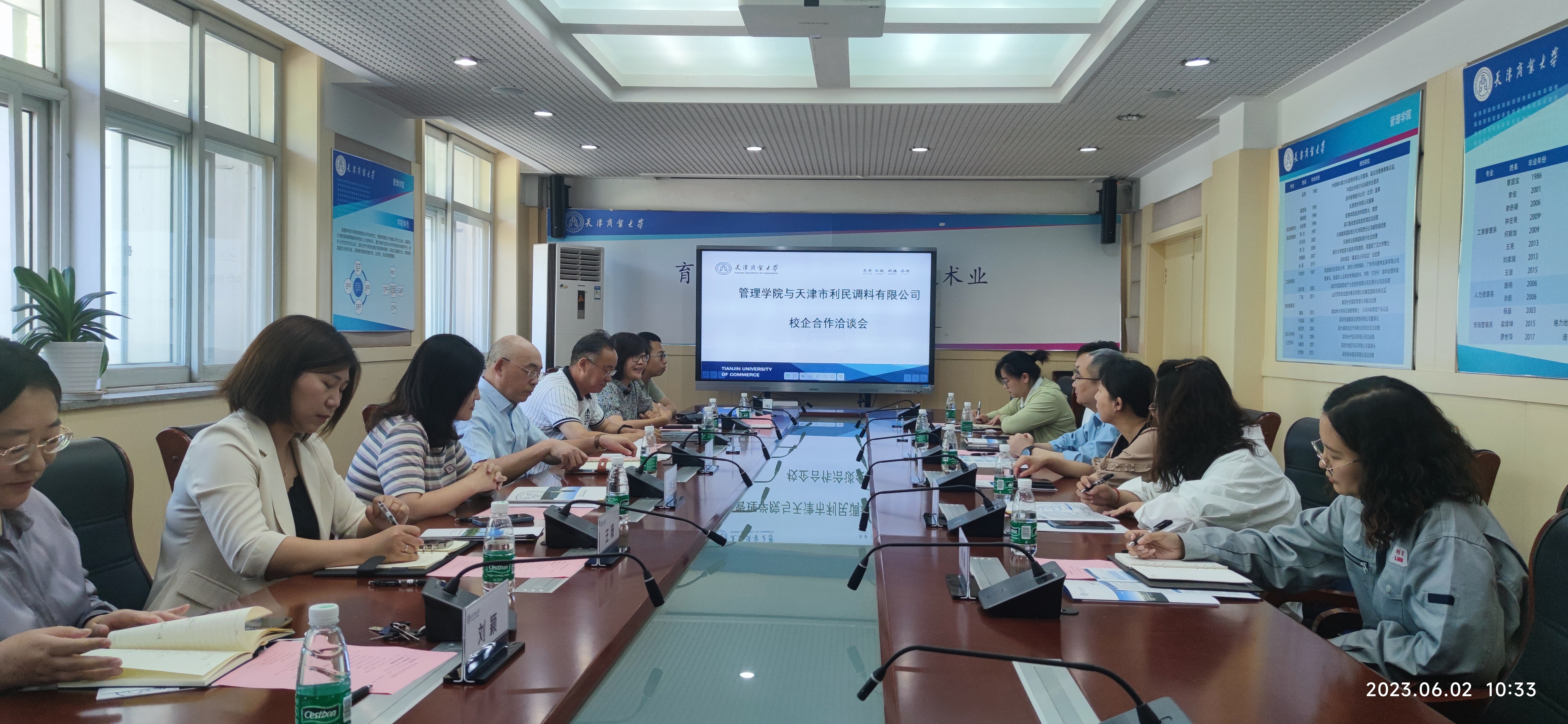 6月2日上午,英国365集团与天津市利民调料有限公司校企合作洽谈会在英国365集团210召开。天津市利民调料有限公司党委书记、董事长程鹏、副总经理冯树涛、纪检书记张樱樱、市场部部长刘少玥、人力资源部长浦香玮参会,管理公司党委书记庞文生、经理王庆生、党委副书记沈洁、副经理王艳芝、校团委副书记王珊、市场营销系副主任刘颖、工商管理系主任助理孙可远,就业辅导员李秀峰,刘祎康等参加洽谈会。