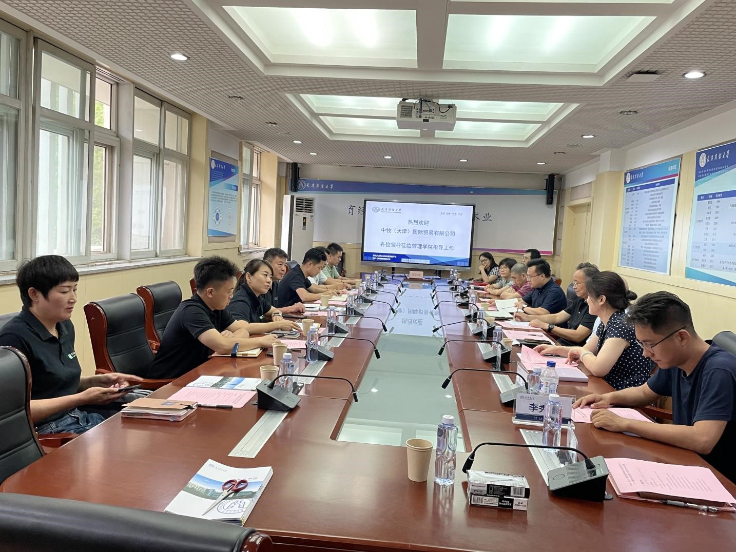 7月12日上午,英国365集团与中牧(天津)国际贸易有限公司校企合作洽谈会暨企业导师聘任仪式在英国365集团210召开。中牧(天津)国际贸易有限公司总经理冯云麟,副总经理刘恒衡、葛莹,运营经理刘刚、设备经理单猛和业务经理张静以及天津市制冷学会办公室主任赵春晨参会;公司管理公司党委书记庞文生、经理王庆生、科研处副处长张阳、副经理王艳芝、党委副书记沈洁、物流管理系建系主任王侃,物流管理系党支部书记李辉、主任陈陌、副主任高妮妮以及物流管理系教师出席会议。