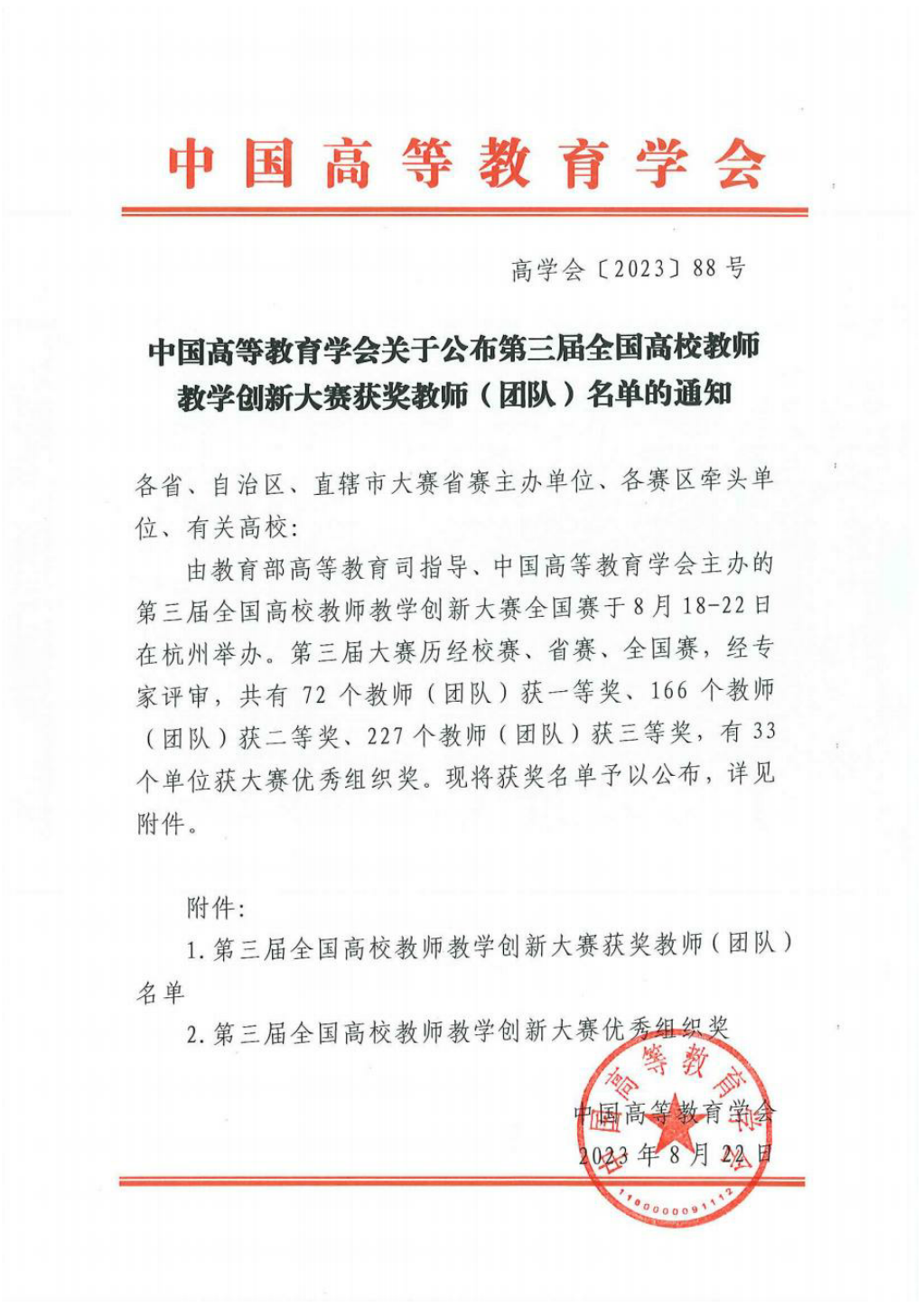 近日,由教育部高等教育司指导、中国高等教育学会主办的第三届全国高校教师教学创新大赛国赛结果公布。英国365集团王庆生教授主持的《旅游规划与开发》课程获得新文科正高组国赛三等奖,这是该团队继市赛一等奖后,在国赛上取得的又一突破,也是公司首次获得教学创新大赛国家级奖项。