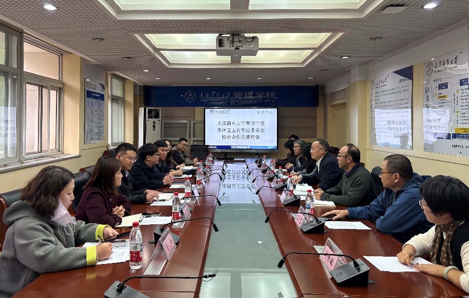 双方围绕宝石及材料工艺学专业与珠宝企业的校企合作建设规划、人才培养模式等核心议题展开深入探讨。双方一致认为,需结合天津珠宝产业实际需求及地方资源特色优势,增加实践教学,开拓更多实习机会,丰富人才培养途径。白文涛主任提出,可提供更多实习就业机会,共建实训基地;王庆经理表示,将积极对接企业岗位标准,细化人才培养目标,实现产教无缝对接。