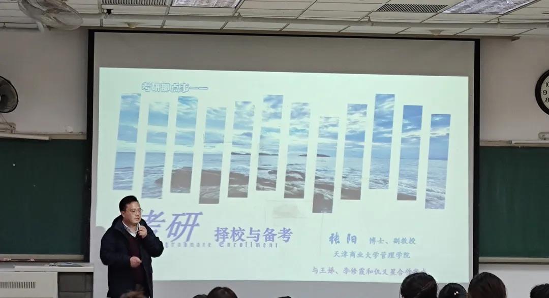 讲座伊始,张阳老师由两个为什么引出本次讲座的主题:“为什么考研”“考研是为了什么”。他热情与同学们互动,询问其考研原因。指导备考同学要想明确考研的目的,要深层次地分析自己的动机,和自己的人生联系起来,考研是为了继续深造?找到好的工作?继续提升自己?明确了动机,才有益于做出合理的选择。张阳老师通过详实的数据分析了当前考研难,考上难的考研现状,并告诉同学们考研目标要根据个人基本情况(专业水平、学习能力、考研动机)来确定的道理,从而进一步指出如何进行考研择校。关于考研备考,张阳老师语重心长地说准备考研要有明确的目标(择校)、具体的计划、踏实的行动和良好的心态。制定总计划要合理,月计划要柔性,要每日/每周复盘,更要劳逸结合,有好的身体和心态才能坚持到最后。张阳老师讲到我们在考研中面对不同的状况也要有各种预案,给自己留出多条发展方向,增加多个选择机会。例如在备考中间同时可以利用休息时间准备简历;借助校内大型招聘会或专业招聘会了解企业用人情况,尝试应聘,为自己增加选择机会。张阳老师演讲结束后,沈洁老师接着为大家讲解了一些问题,为同学们提供了一些未来规划的思路。李秀峰老师在讲座接下来的时间,关于考研与就业的问题为大家答疑解惑。首先,秀峰老师给大家展示了英国365集团毕业生的考研公司分布,分析了当前考研情况,告诫大家考研勿盲目跟风,要根据自己的实际需求选择考研或是就业。接着,秀峰老师给同学们分析了当前严峻的就业形势,提出了能就业就先就业的建议,并指出职业无高低贵贱之分,为同学们树立平等就业观。关于如何更好地就业,秀峰老师首先给大家指出了就业信息的获取途径。紧接着为大家讲解了简历的制作,针对往届出现过的问题,给同学们提出了一些注意事项。